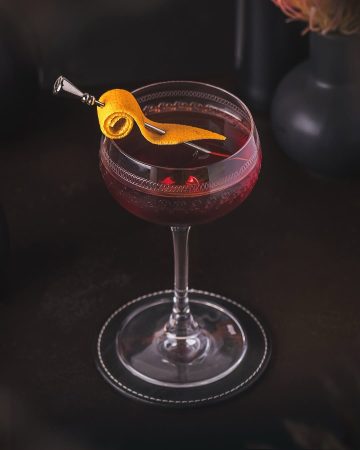 Preparo: resfrie previamente uma taça coupe e, em mixing glass, misture todos os ingredientes com gelo. Transfira com um coador para a taça previamente resfriada. Finalize com um zest de laranja, torcendo a casca sobre o coquetel para liberar os óleos.