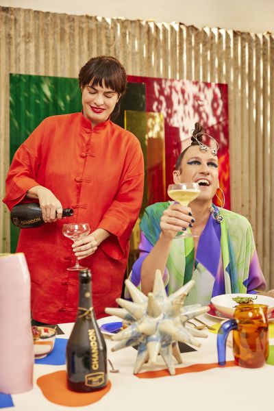 Para preparar o ambiente e a mesa onde todos são bem-vindos, o artista e stylist Dudu Bertholini e a artista visual Aline Bispo mostram suas colaborações trazendo, mais brilho, diversidade e um toque especial na decoração, tudo pensado para combinar com as criações de menu dos chefs e harmonizar e com Chandon.