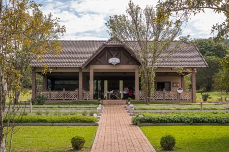 Uma casa em estilo germânico instalada em um amplo gramado verde, entre as sombras de árvores e de frente para o lago, é um convite à tranquilidade. Não só pela aparência, o espaço chama atenção pelas mais de 70 opções de ervas cultivadas na entrada.