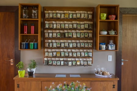 No Empório do Chá, é possível provar chás quentes e frios, diariamente, preparados com ervas naturais colhidas na propriedade. As mais de 70 opções de sabores, assim como acessórios para degustação de chá, estão disponíveis para compra.