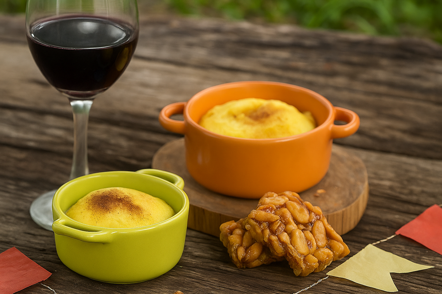 A clássica maçã do amor, com sua cobertura crocante de caramelo, não pode faltar numa festa junina tradicional. Unindo doçura e frescor, pode ser harmonizada com o vinho branco de colheita tardia. Rótulos elaborados com a Sauvignon Blanc, por exemplo, como o argentino Portillo Valle de Uco Sauvignon Blanc Dulce Natural 2022. Com frescor doce e notas de maçã verde, este vinho potencializa os sabores da fruta caramelizada, criando uma combinação irresistível.
