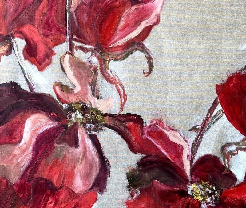 “Ao pensar o efêmero como continuidade, a artista trata da vitalidade que se renova no que parecia inútil, dignificando cada versão da matéria. Seja na pintura a óleo sobre linho ou no bordado, Fabiana Queiroga nos lança no vermelho — cor da paixão e do sangue, que mata e acende, que circula e se esvai. Artista da matéria e do pensamento, devolve o tempo à sua própria natureza: entre a vida que carrega a morte e a morte que pulsa a vida”, enfatiza Christiane Laclau sobre as obras da artista.