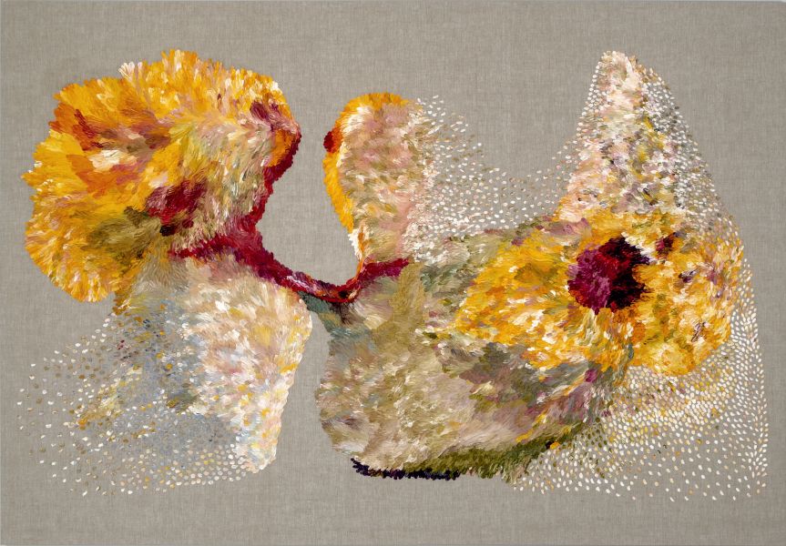 É infinitamente grande e infinitamente pequena a observação do humano: células e líquidos, sensualidade, batimentos cardíacos, ondas magnéticas e emoções. Mergulho na memória íntima e no “tempo que passa”, ciclos de vida-morte-imortalidade. Observo a estética intuitiva da natureza – flora e cosmos – seus líquidos, respirações e movimentos. A fascinação pela metamorfose e os mitos de Ovídio. A ousadia de criar um “abrigo” ideal em que ser humano, natureza e universo são um continuum – respeitar o outro é respeitar a si.