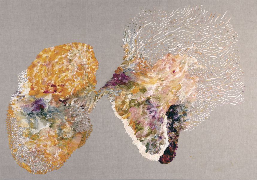 Sua obra surge pixelada: não se sabe se assistimos a algo muito ampliado ou absurdamente distante, dentro de um universo decomposto ou em formação. A paleta terrosa, justa e equilibrada não esconde a conexão telúrica. Formas orgânicas surgem da aglomeração de células-mundo contidas em cada toque da espátula, em um movimento de crescimento e ocupação da tela e representações semoventes e mutantes.