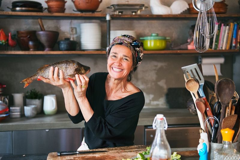 A ideia de que cidades são organismos vivos talvez valha como verdade absoluta no caso da capital alemã, Berlim. Desde a queda do Muro, ela é uma experiência diferente a cada ano. Muitas tendências nascem e morrem aqui. A Top View experimentou uma delas jantando no restaurante meio cozinha de casa, meio ateliê culinário da brasileira neta de berlinenses Sabine Hueck. Os berlinenses já conhecem a proposta, mas a experiência de abrir as portas do lugar apenas para servir jantares temáticos e para grupos – que cozinharão juntos – costuma ser totalmente nova para, especialmente, brasileiros. A sorridente Sabine convida a entrar no Atelier Culinário e incentiva a participação no preparo das receitas ao redor da enorme mesa de madeira. Daí em diante é bate-papo de avental, drinques, experiências com temperos, aperitivos… Até a hora de ir à mesa e curtir a refeição preparada a várias mãos. Sabine é o reflexo de uma Berlim descolada e escancarada para o resto do planeta e para as propostas que dele vierem. Sua cozinha tem elementos brasileiros (na mesa, no prato e no ambiente) e ingredientes do mundo todo, coisa que aprendeu com os avós, que chegaram ao Brasil fugindo no nazismo. Em casa, eles faziam receitas alemãs com ingredientes brasileiros e hoje, 30 anos após Sabine se mudar para a Alemanha, não há mais fronteiras em sua mesa. Autora de vários livros de culinária, ela recebe gente de todos os perfis, incluindo políticos, e acaba ela mesmo sendo, com suas muitas histórias, uma das atrações.