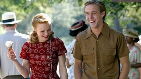 Diário de uma Paixão acompanha o romance entre Allie (Rachel McAdams) e Noah (Ryan Gosling), jovens que se apaixonam nos anos 1940 e enfrentam a oposição da família dela por conta de diferenças sociais. Baseado na obra de Nicholas Sparks, o longa é lembrado por sua narrativa emotiva e cenas clássicas do cinema romântico.