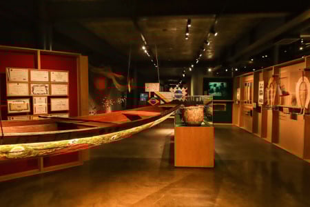 Sala do Museu Paranaense com a exposição de longa duração Mejtere – Histórias Recontadas.