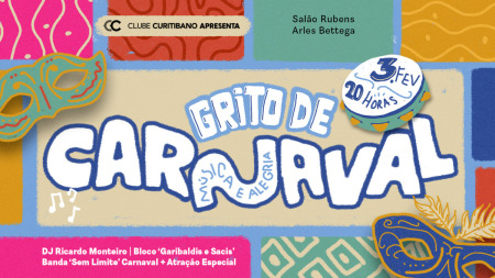 Já em clima de carnaval, o Clube Curitibano realizará pela primeira vez o ‘Grito de Carnaval’, uma noite inteira marcada por marchinhas e folias. O evento é voltado para o público adulto e contará com a presença do DJ Ricardo Monteiro, o Mini Bloco ‘Garibaldis e Sacis’, com marchinhas e batuques clássicos e a Banda Sem Limite.