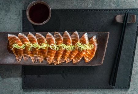 Carpaccio de salmão, servido no menu do Open Sake (Foto: reprodução | instagram @funikirooftop)