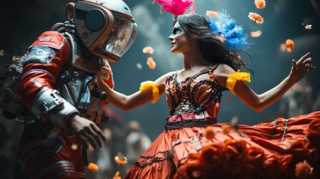 Nós abrimos as portas para a Inteligência Artificial e ela invadiu nosso mundo ou nós ainda temos o controle de tudo? Com esse questionamento, a TOPVIEW criou um editorial de moda totalmente digital, concebido por meio de Inteligência Artificial. Justamente por ter essa liberdade criativa, Gustavo Magalhães juntou períodos históricos da humanidade em uma única imagem, mostrando as infinitas possibilidades da IA trabalhada junto à criatividade humana.