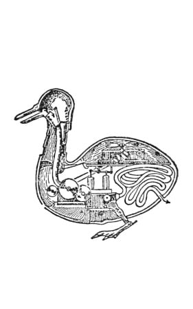 Um androide que toca flauta e um pato capaz de comer e defecar são desenvolvidos pelo francês Jacques de Vaucanson.