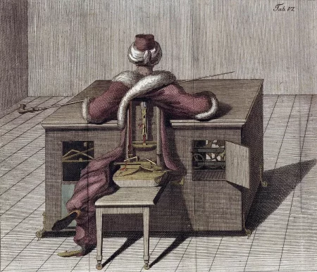 O Turco era uma ilusão mecânica criada por Wolfgang von Kempelen que permitia a um jogador escondido operar uma máquina de xadrez.