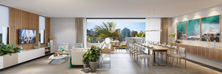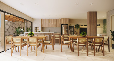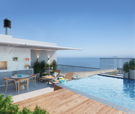 Com quatro suítes, ambientes amplos e salas integradas, os apartamentos refletem o senso de exclusividade e nível de detalhamento do projeto. As áreas comuns apresentam espaços sofisticados de convivência, com uma piscina com prainha, sauna a vapor, salão de festas gourmet com estrutura completa e bicicletário.