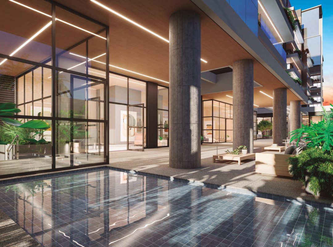 O responsável por integrar conforto e acolhimento à sofisticação e contemporaneidade ao projeto é o escritório Bohrer Arquitetos. Diferentes elementos marcam essas características: revestimentos amadeirados, paleta de cores claras, paisagismo integrado e formas geométricas são alguns deles.