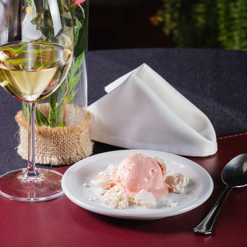 (OPÇÃO 2) Gelato de pistache com calda de chocolate 70%.