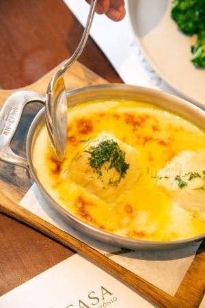 Bacalhau Caxamar ao creme de Mascarpone da Casa Santo Antônio