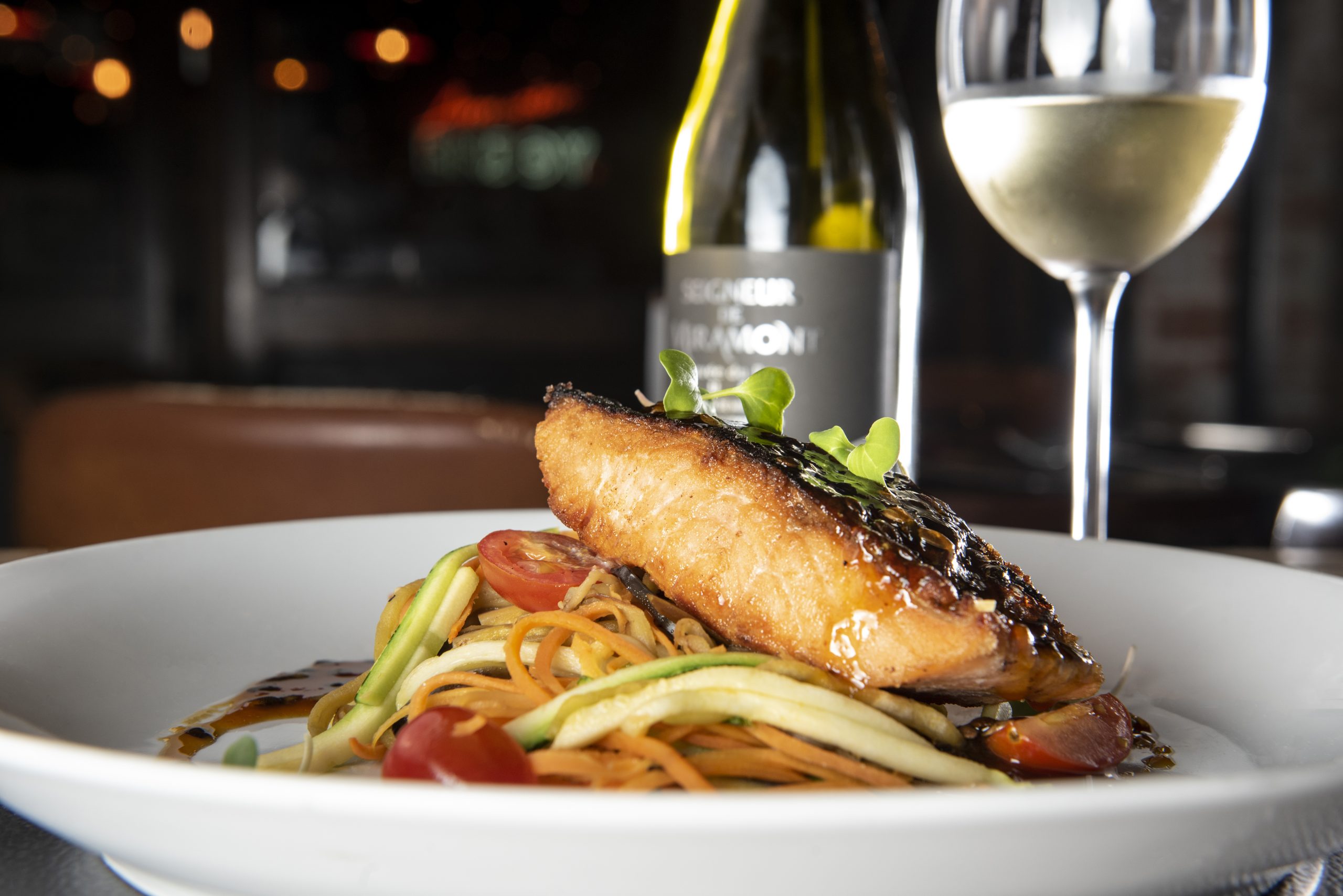Os frutos do mar são apresentados em duas versões para os pratos principais: camarão crocante com risoto alho-poró e salmão grelhado com molho de maracujá e spaghetti de legumes.