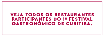 O Festival Gastronômico de Curitiba já está acontecendo! O público poderá escolher cardápios de 52 restaurantes e garantir uma experiência completa: entrada, prato principal e sobremesas deliciosas. O evento acontece até o dia 1º de outubro em toda a cidade. Clique aqui para conhecer os restaurantes participantes.