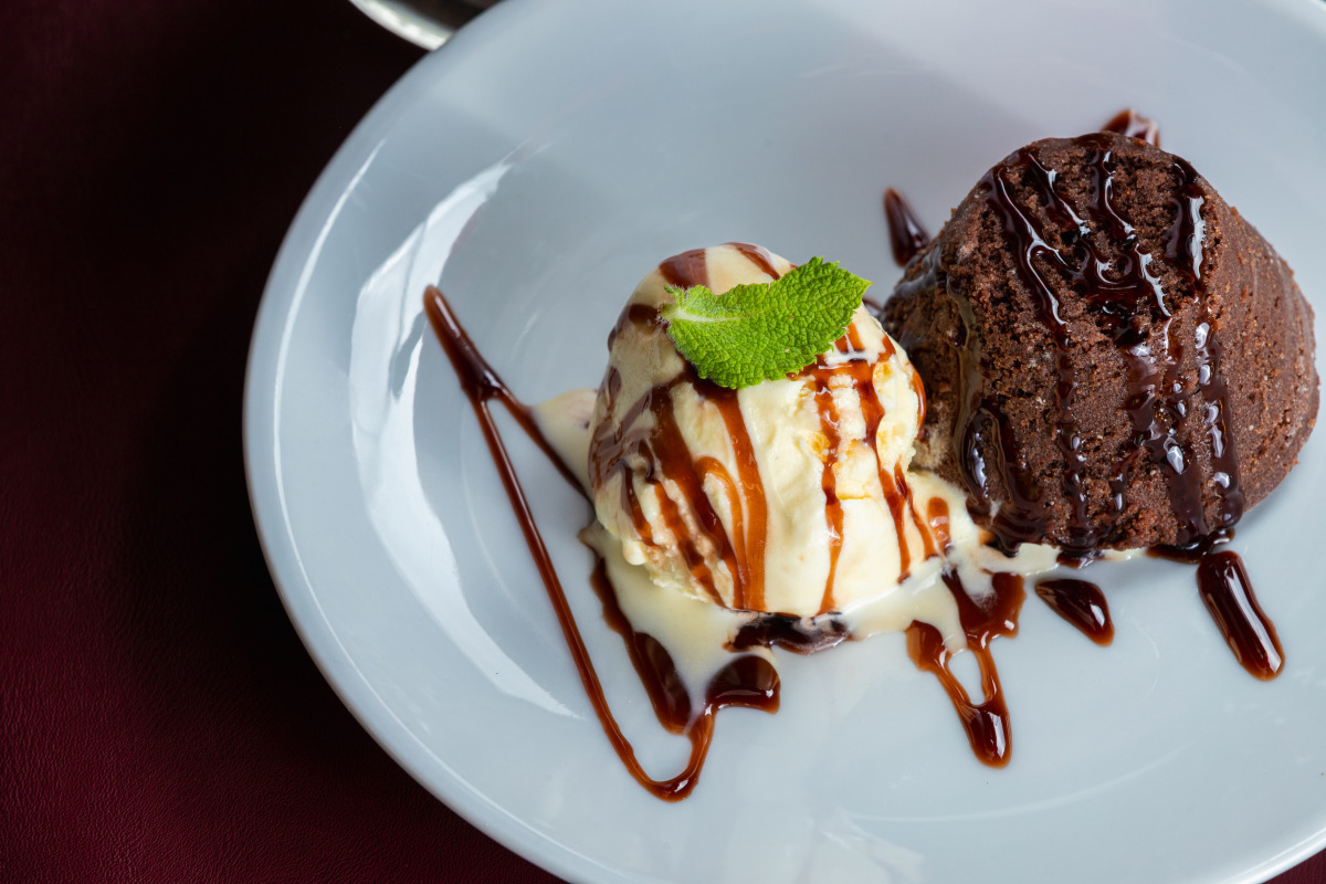 (Opção 1) Petit Gâteau de Chocolate e Sorvete de Creme.