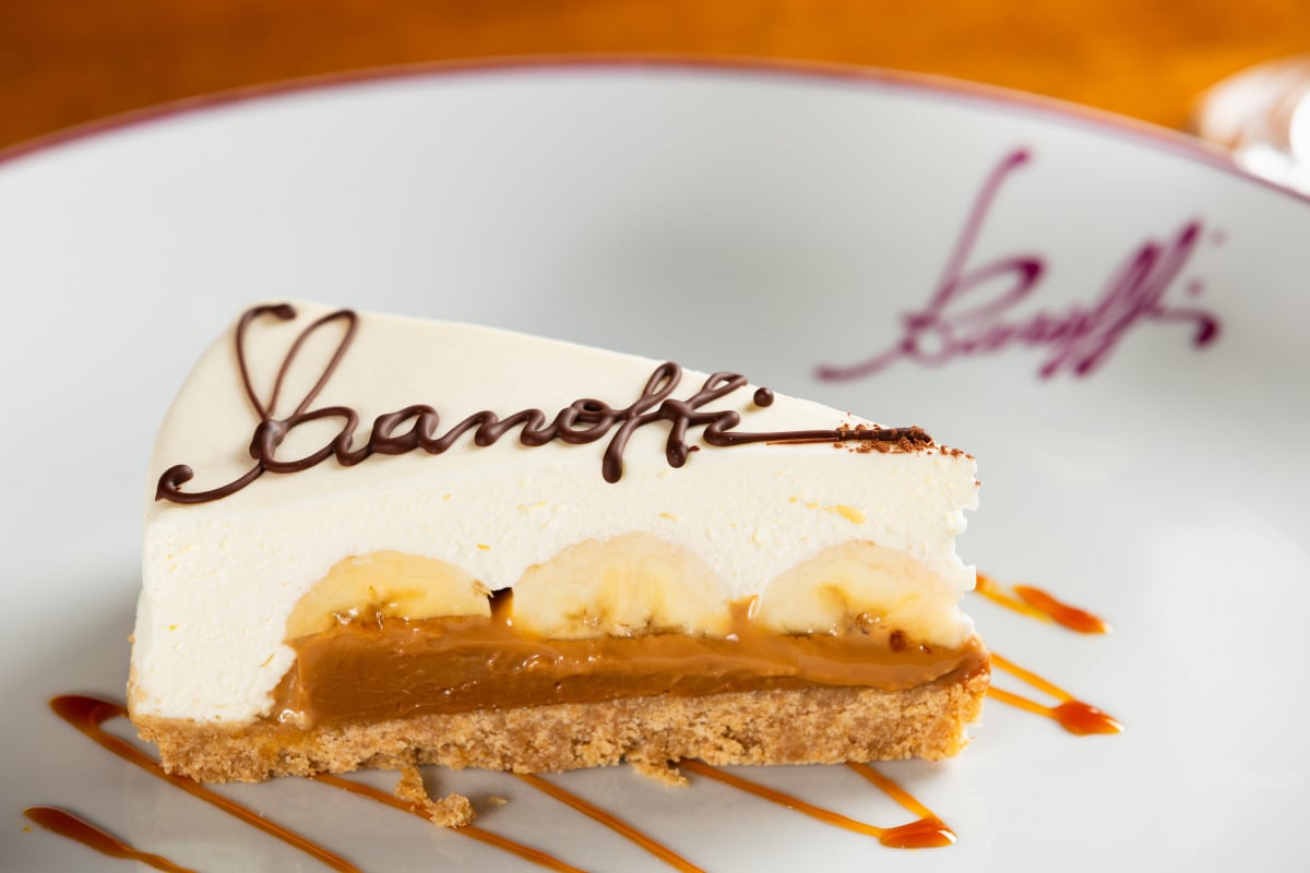 (Opção 1) Banoffi, a Original (casquinha de bolachas, doce de leite, bananas frescas e nata batida).