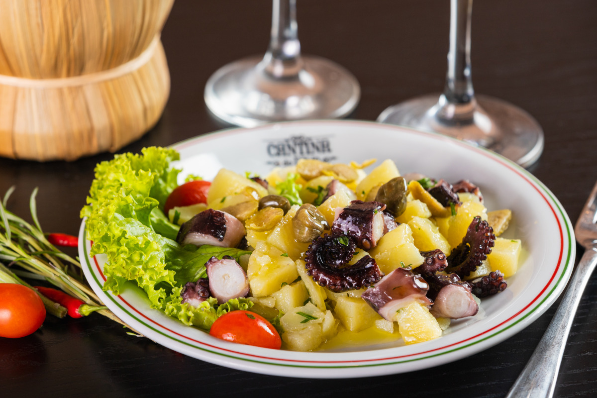 (Opção 2) Insalata di Polpo e Patata (salada fresca com polvo, batatas, limão e azeite de oliva).