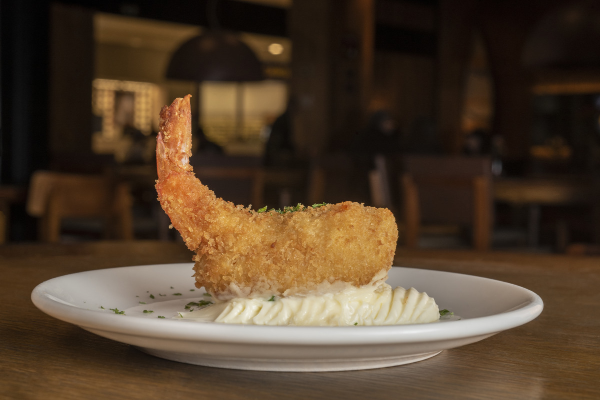 (Opção 1) Camarão Empanado e Recheado com Queijo Catupiry.