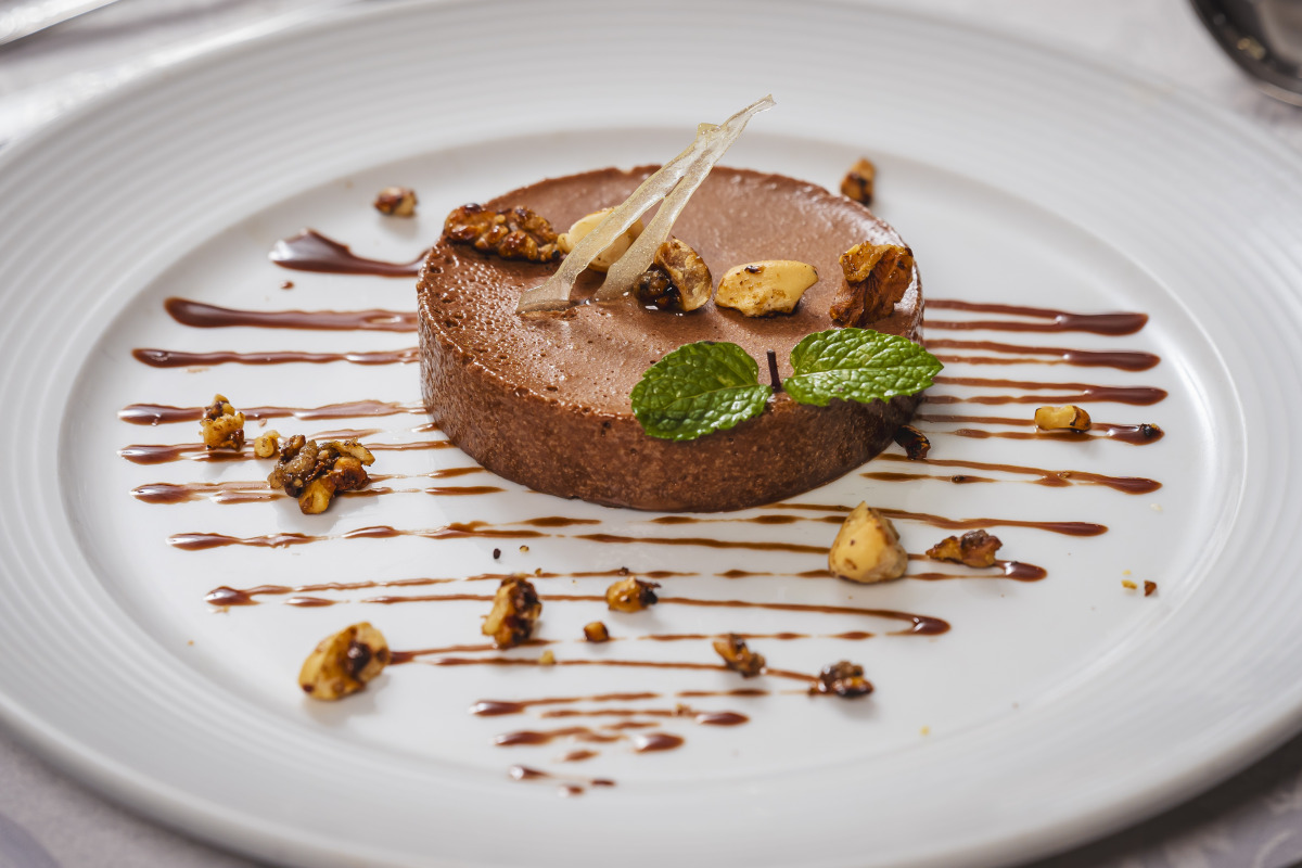 (Opção 2) Bavaroise (bavaroise de chocolate belga com pralinê de castanhas).