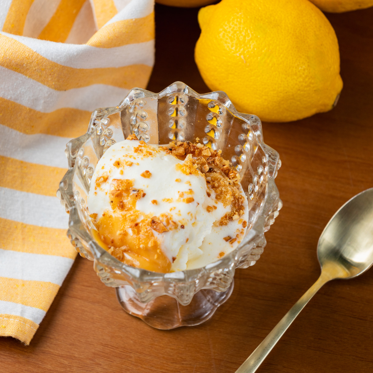 (Opção 2) Gelado de Parmiggiano (sorvete cremoso de queijo parmesão, calda de doce de leite artesanal e crocante de amêndoas).