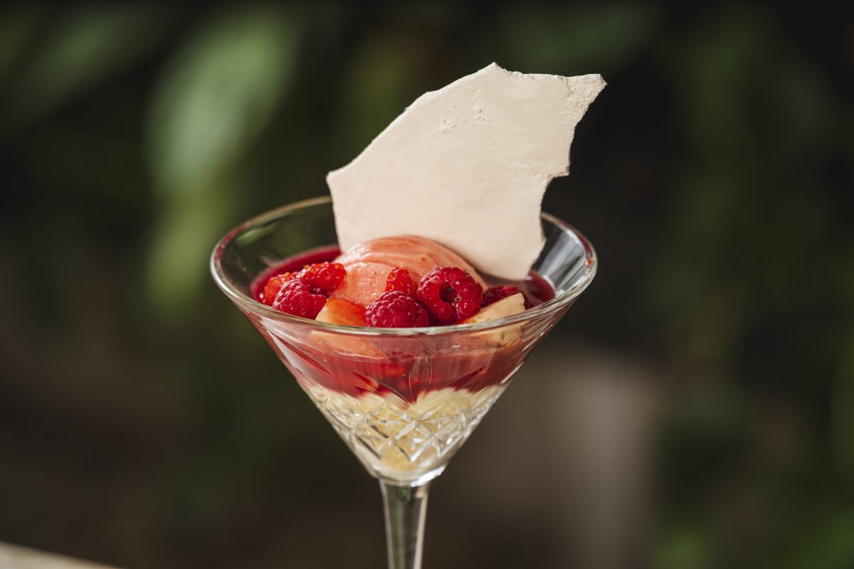 (Opção 2) Sundae de Frutas Vermelhas (coulis de frutas vermelhas, gelatto artesanal Frutas Vermelhas e chantilly).