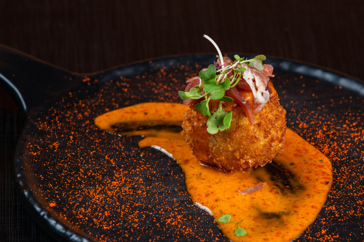 (Opção 1) Croqueta de Jamón (croqueta, maionese de páprica da casa e jamón serrano).