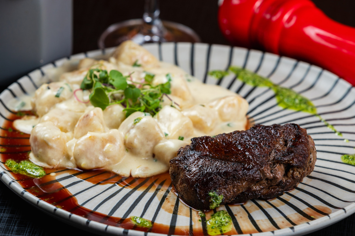 (Opção 1) Mignon Alfredo (mignon com nhoque ao molho Alfredo e demi glacê).
