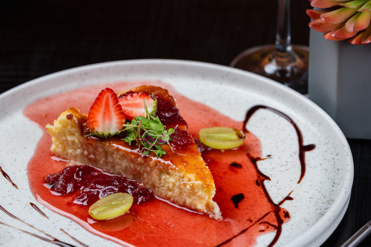 (Opção 2) Torta Basca (torta cremosa com geleia de morango).