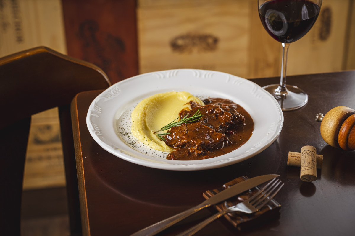 (Opção 1) Brasato Alla Birra (acompanhado de purê de batatas).