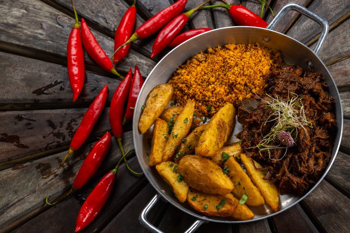 (Opção 1) Ragu de Costela (costela bovina cozida na pressão, farofa da casa e batata rústica).