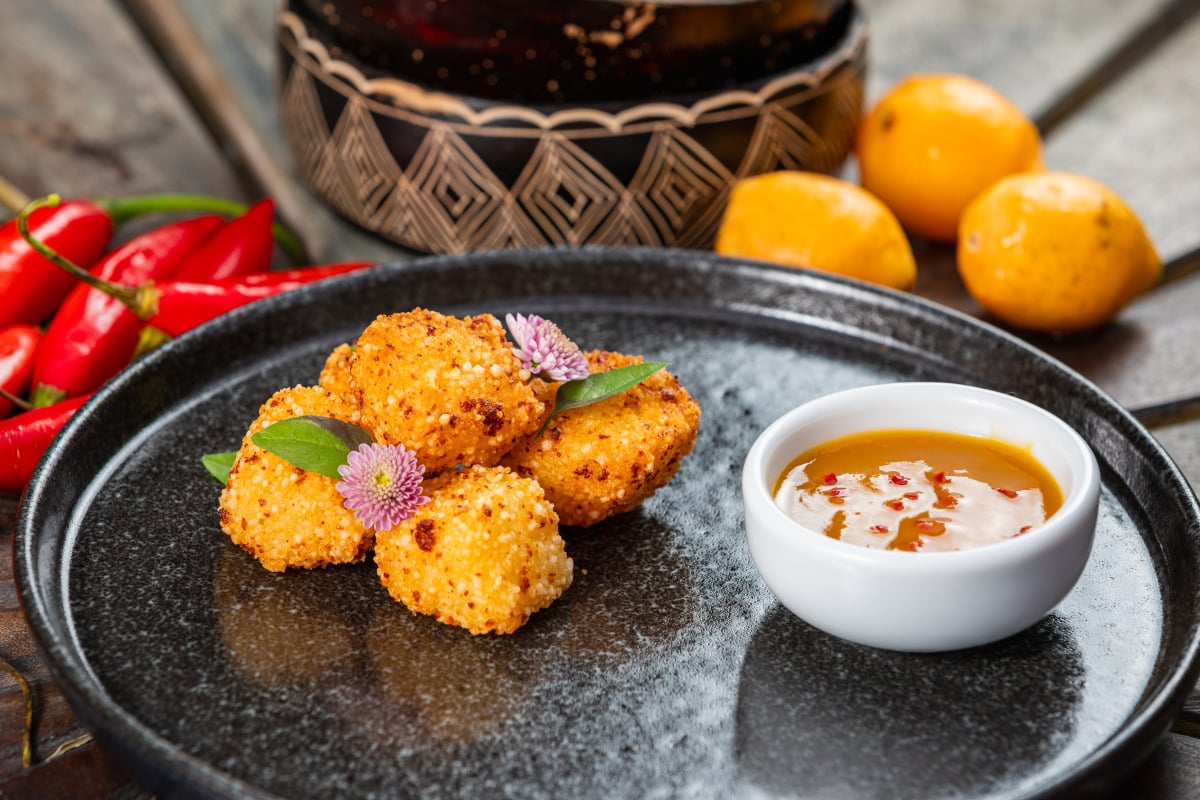 (Opção 2) Dadinho de Tapioca (dadinho de tapioca acompanhado de redução de cajá com pimenta).
