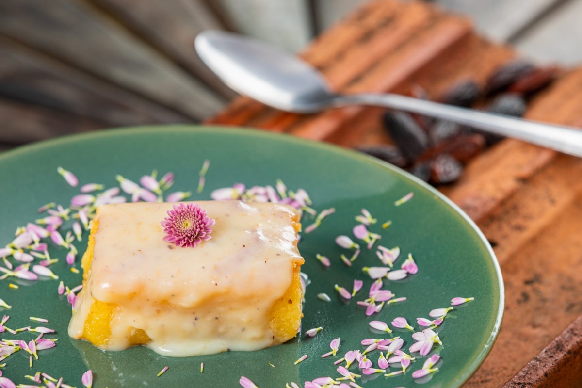 (Opção 1) 1) Bolo de Macaxeira (bolo de macaxeira com coco fresco e cobertura de brigadeiro de cumaru).