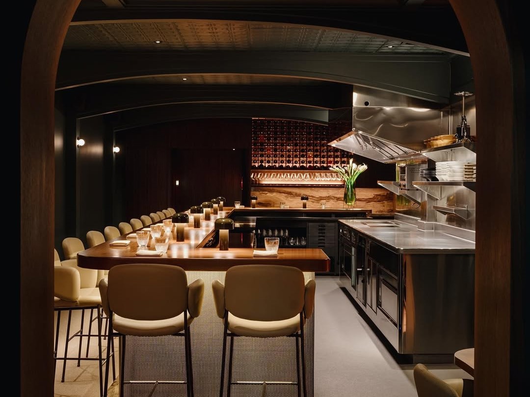 O restaurante é acessado por uma entrada secreta disfarçada como uma pintura em uma galeria de arte na West 8th Street. Ao atravessar a obra, os clientes entram em um ambiente elegante e minimalista, com um balcão de quartzito que acomoda 18 pessoas, além de uma mesa privativa para seis pessoas.