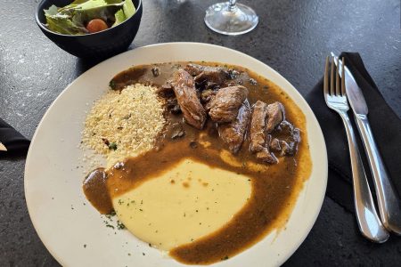 Todas as proteínas são servidas com três acompanhamentos, a serem escolhidos entre: arroz branco, feijão, farofa crocante, legumes grelhados, salada do dia, purê de batata, batata frita, legumes no vapor com manteiga e ervas e, por fim, massa na manteiga.