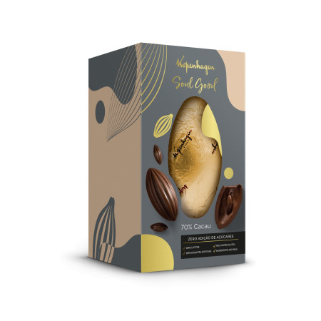Outro destaque da linha Soul Good é o Ovo Soul Good 70% Cacau (215g -R$ 129,90), ovo e bombons de chocolate amargo 70% em formato de cacau é a escolha ideal para quem gosta do sabor mais intenso do chocolate e pessoas com restrições à lactose, açúcar ou glúten, mantendo a qualidade e o sabor do chocolate Kopenhagen.