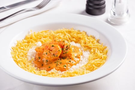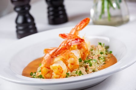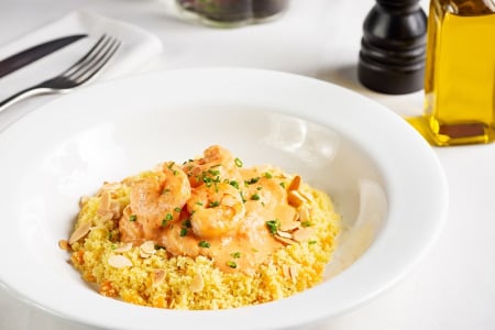 São quatro diferentes preparos com camarões como prato principal. As opções são Camarão a Provençal (R$ 160), camarões grandes grelhados, concassé de tomate e couscous marroquino com manjericão; Crevettes Santé (R$ 160), com camarões grandes grelhados, molho de castanha de caju e tomate, servido com arroz de couve-flor e amêndoas laminadas (sem lactose e sem glúten), receita exclusiva da nutricionista Selma Vosgerau. Camarão ao Curry (R$ 122), camarões médios no molho de curry, couscous marroquino e amêndoas laminadas e, o clássico, Strogonoff de Camarão (R$ 106), camarões médios no molho strogonoff, arroz branco e batata palha.