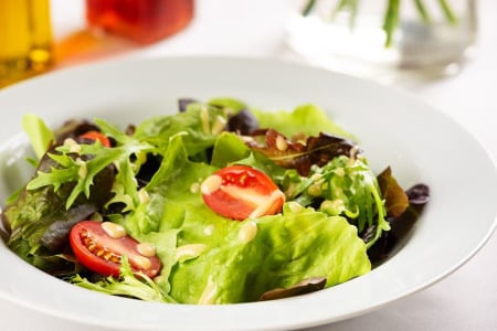 Neste Festival, o que dita o valor do menu é a escolha do prato principal. São quatro preparos diferentes onde o protagonista é o camarão. Para a entrada, Salada Verão, com folhas, tomatinhos e vinagrete de mel, laranja e manjericão.