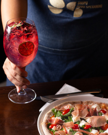 Para acompanhar as pizzas preparadas na casa em forno à lenha, os clientes podem aproveitar a promoção de vinho e gin tônica à vontade com duração de duas horas, bastando adquirirem uma pizza individual ou grande para ativar a promoção.