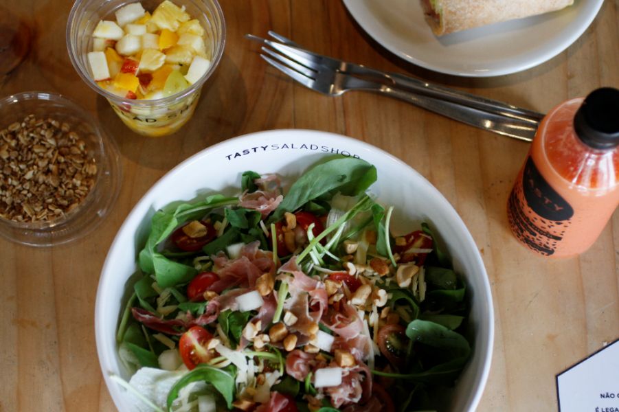 A rede curitibana de saladas e comidas naturais acaba de abrir sua quinta franquia na cidade, em quatro anos. Idealizada pelo casal de arquitetos Patrícia Lion e Rodrigo Pasinato, a Tasty segue seu plano de expansão para descomplicar a alimentação saudável por meio de comidas leves e saborosas. Seus carros-chefes são as saladas, os sucos e os bowls de salada morna, mas há opções como sanduíches, wraps, quiches, sobremesas fit e, no inverno, sopas. Destaque para a salada blue cheese (alface americana, acelga, rúcula, gorgonzola, bacon, nozes caramelizadas e molho de mostarda; R$ 19,50), que pode acompanhar a quiche de alho-poró (adicional de R$ 8) ou o peito de frango em cubos (adicional de R$ 6,50), por exemplo.