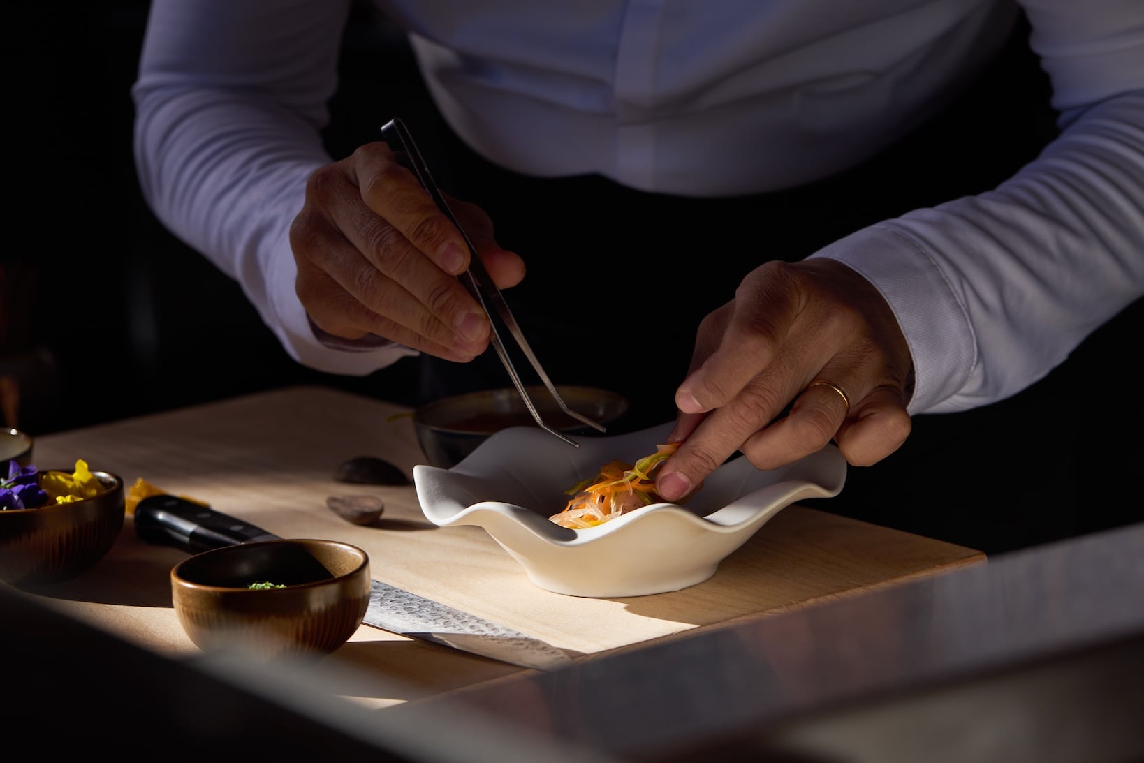 Ao lado do Chef Jérôme Videau e sua equipe, Raphael Rego assina um menu exclusivo em que o fogo é o grande protagonista da experiência. Para ele, essa sempre foi sua marca registrada ao longo da carreira, especialmente no OKA. O menu inédito combina as riquezas do terroir marroquino com os autênticos sabores brasileiros, criando um sutil e envolvente diálogo gastronômico entre Marrocos e Brasil. O chef criou combinações de sabores únicas, unindo ícones da gastronomia brasileira com elementos e ingredientes marroquinos – como o tucupi da Amazônia, uma redução de mandioca fermentada que realça pratos com peixe, a moqueca baiana, um ensopado de peixe à moda brasileira reinterpretado com frutos do mar de Agadir e a castanha de baru, um tesouro brasileiro que enriquece sobremesas com e frutas cítricas e ervas frescas do Royal Mansour Marrakech.