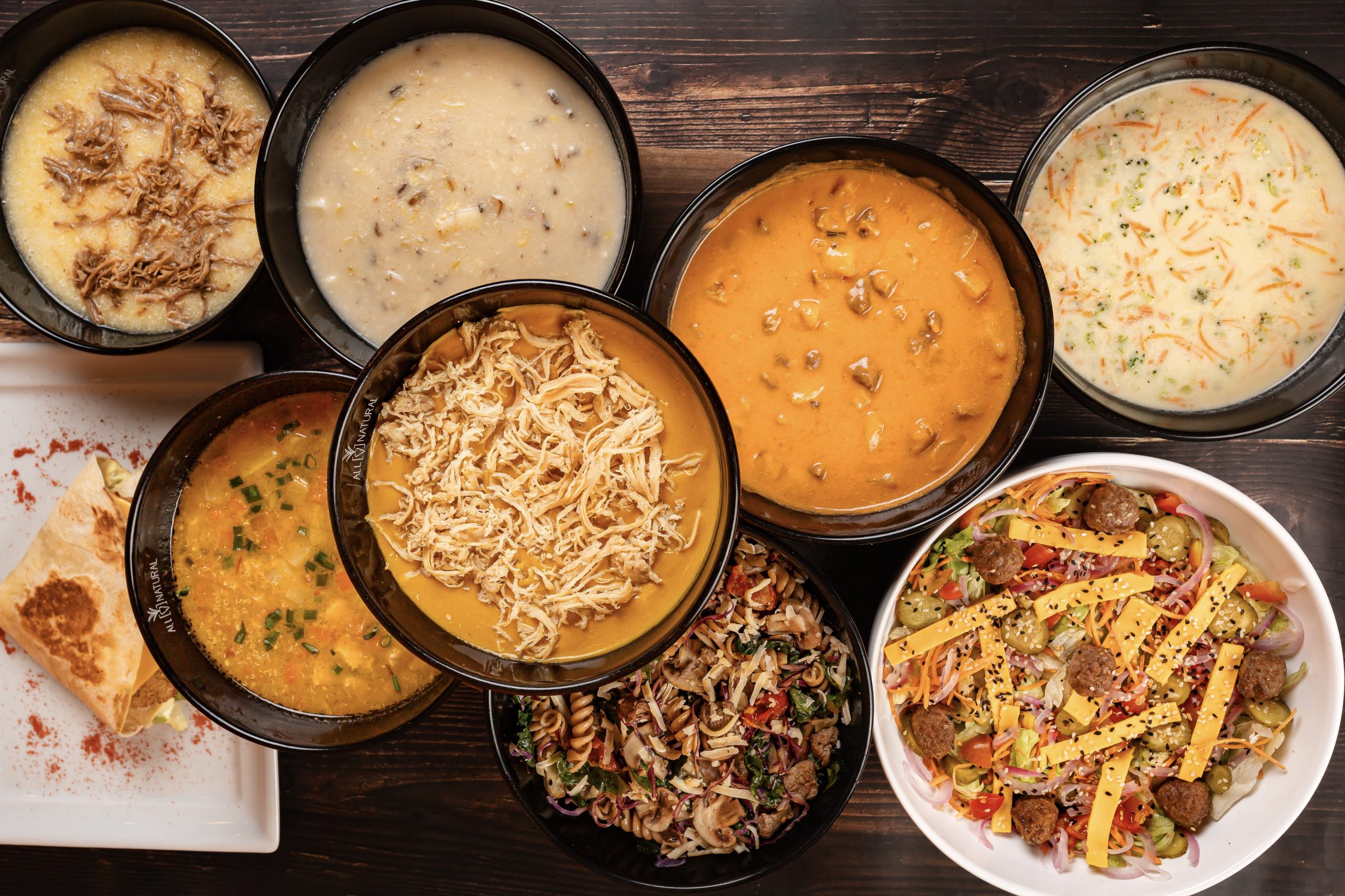 • Chicken Broccoli: uma sopa com mix de vegetais e texturas, como couve-flor batida, cenoura ralada, brócolis picadinho e mandioca em creme, envoltos em um caldo de legumes caseiro, acompanhada de frango desfiado com toque de creme de leite zero lac e leite de coco, finalizada com queijo parmesão;