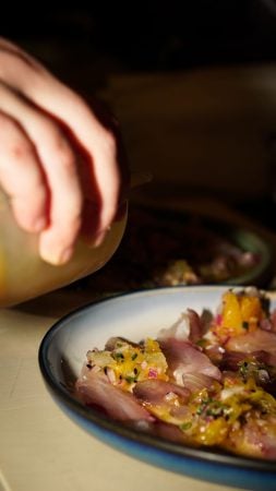 No menu de abertura da casa, destaque para as entradas, com opções “para comer com as mãos”, que trará preparos como o Gyusandô, sanduíche de carne empanada com gergelim, manteiga queimada e kimchi e os Bunyols, tradicionais bolinhos espanhóis preparados com bacalhau servidos com mel fermentado e pimenta. Já entre os “crudos e tartares”, estará um delicioso peixe curado servido com vinagrete de campari, umeboshi, cítricos e farofa de pão.