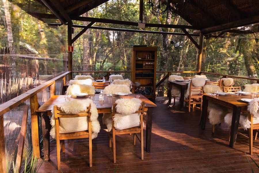 Nos decks externos, que são cobertos, pelegos estrategicamente colocados sobre as cadeiras e mantinhas fazem parte dos itens disponibilizados, além de locais próximos preparados para receber fogueiras. A Casa Costaneira, bela construção em madeira que lembra casas de montanha, também é uma alternativa para os dias mais frios.
