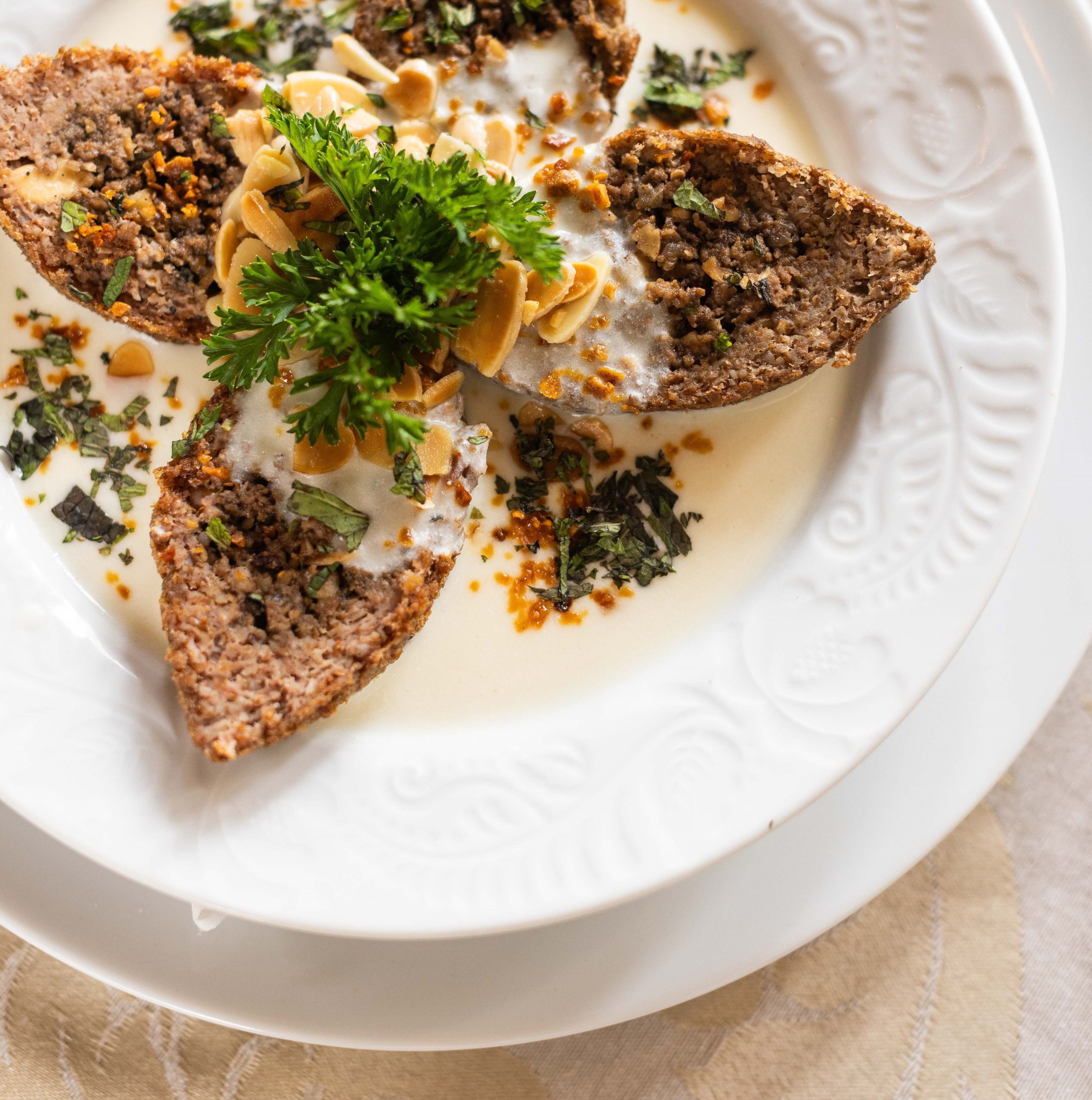 ⦁ Quibe na Coalhada: quibes recheados com carne, nozes, amêndoas e