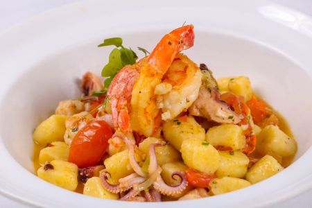 Os pratos principais destacam muitas massas, como Gnocchi com Frutos do Mar (camarão, lula, marisco e polvo – R$ 89), Raviolis de Cordeiro, Mussarela de Búfala ou com Camarões (R$ 79, R$ 59 e R$ 99 respectivamente). Há, ainda, o Pappardelle de Pato (com cogumelos e molho demi glacê – R$ 79).