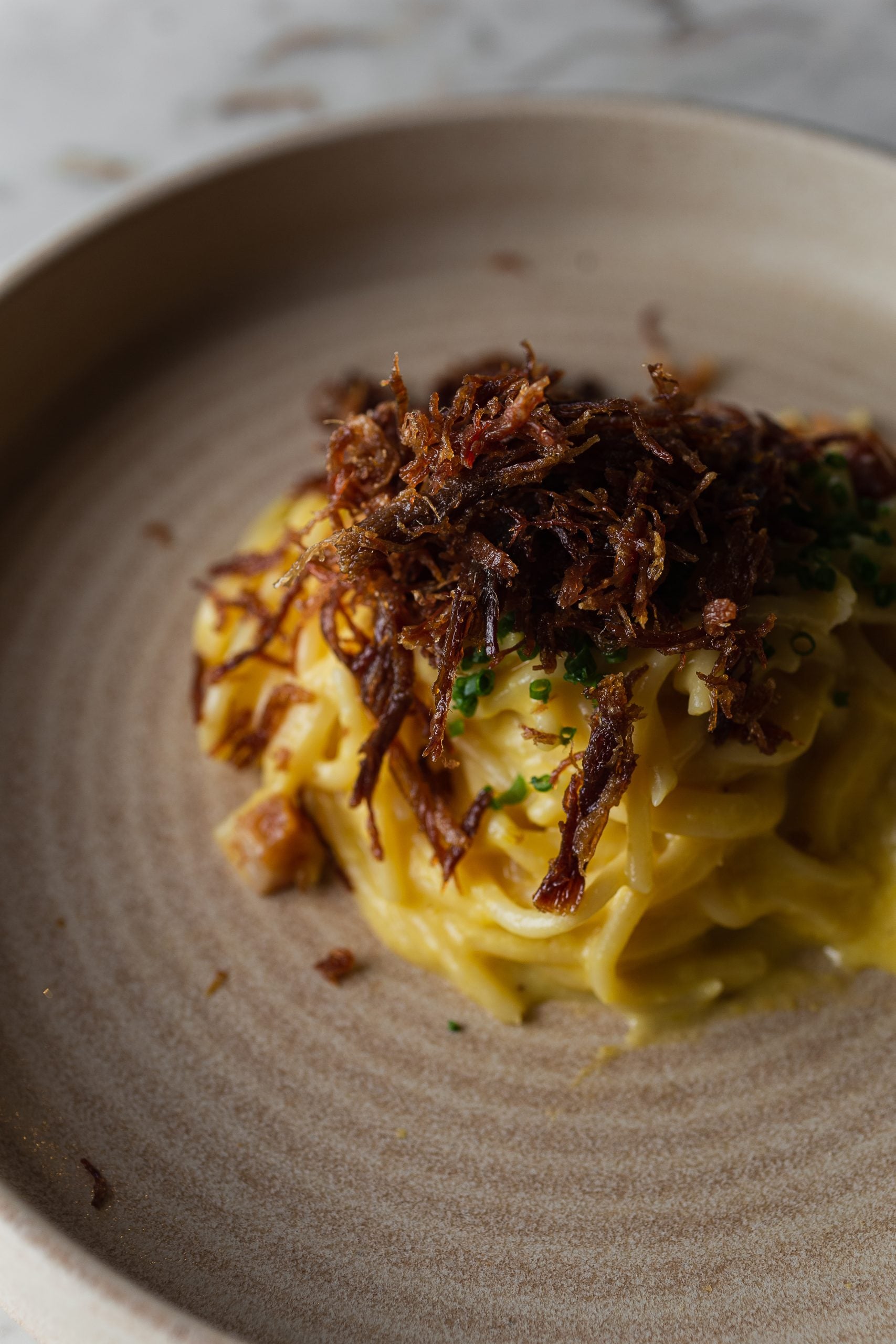Entre os destaques estão a tábua de picanha Angus servida com farofa de ovo, pão de alho, mandioca frita e vinagrete especial, o nhoque de mandioquinha com camarão, a Carne de Onça com trio de mostardas e aioli e o Carbonara de Carne-Seca, que conecta a tradição italiana ao sabor brasileiro. A experiência se completa com a carta de drinks autorais, que inclui caipirinhas com ingredientes regionais e nomes inspirados na música nacional, como Mais que Nada, Cheia de Graça e Tropicália.